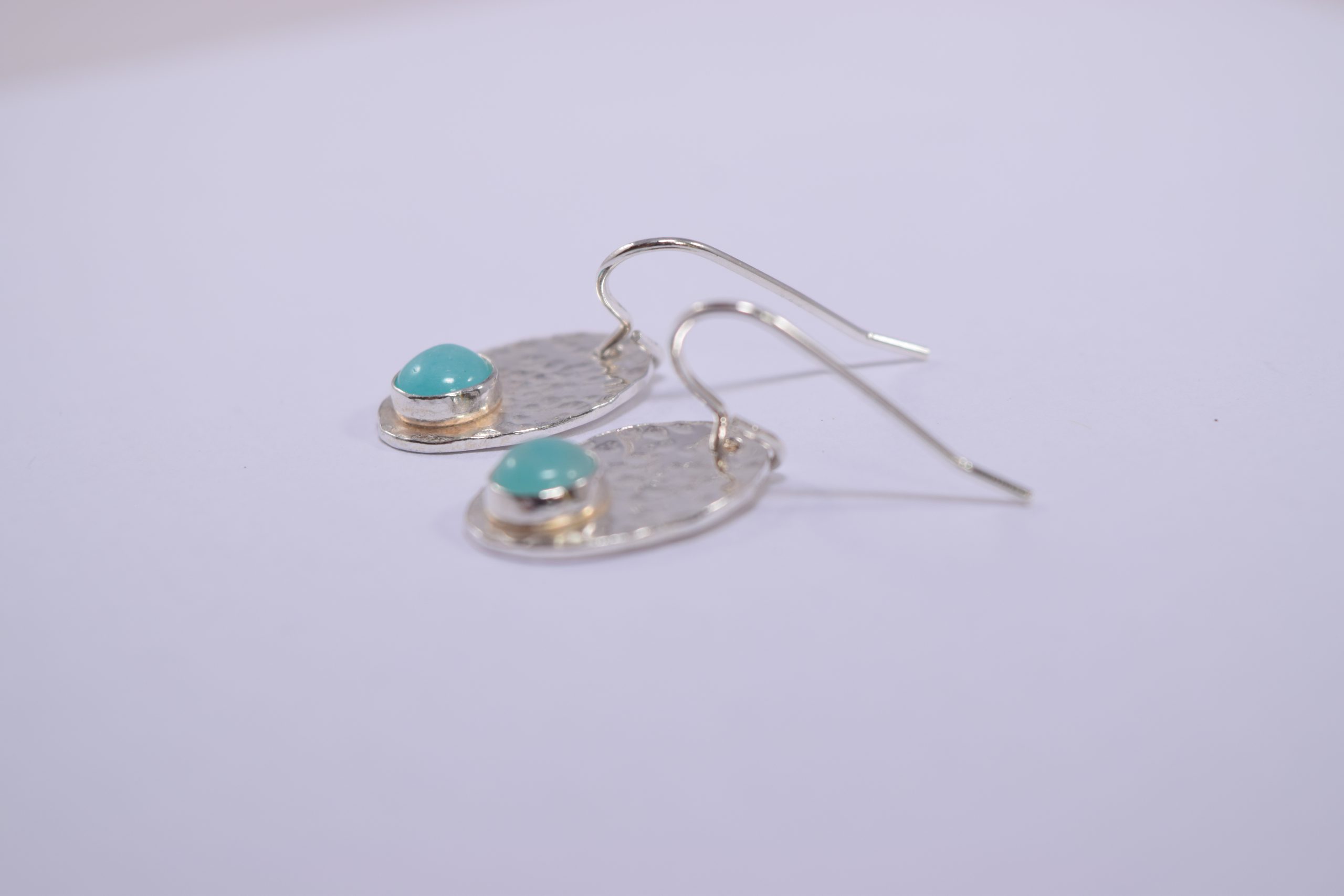 Summery earrings with hammered silver and a gorgeous aqua Amazonite. Approximately 3cm long.